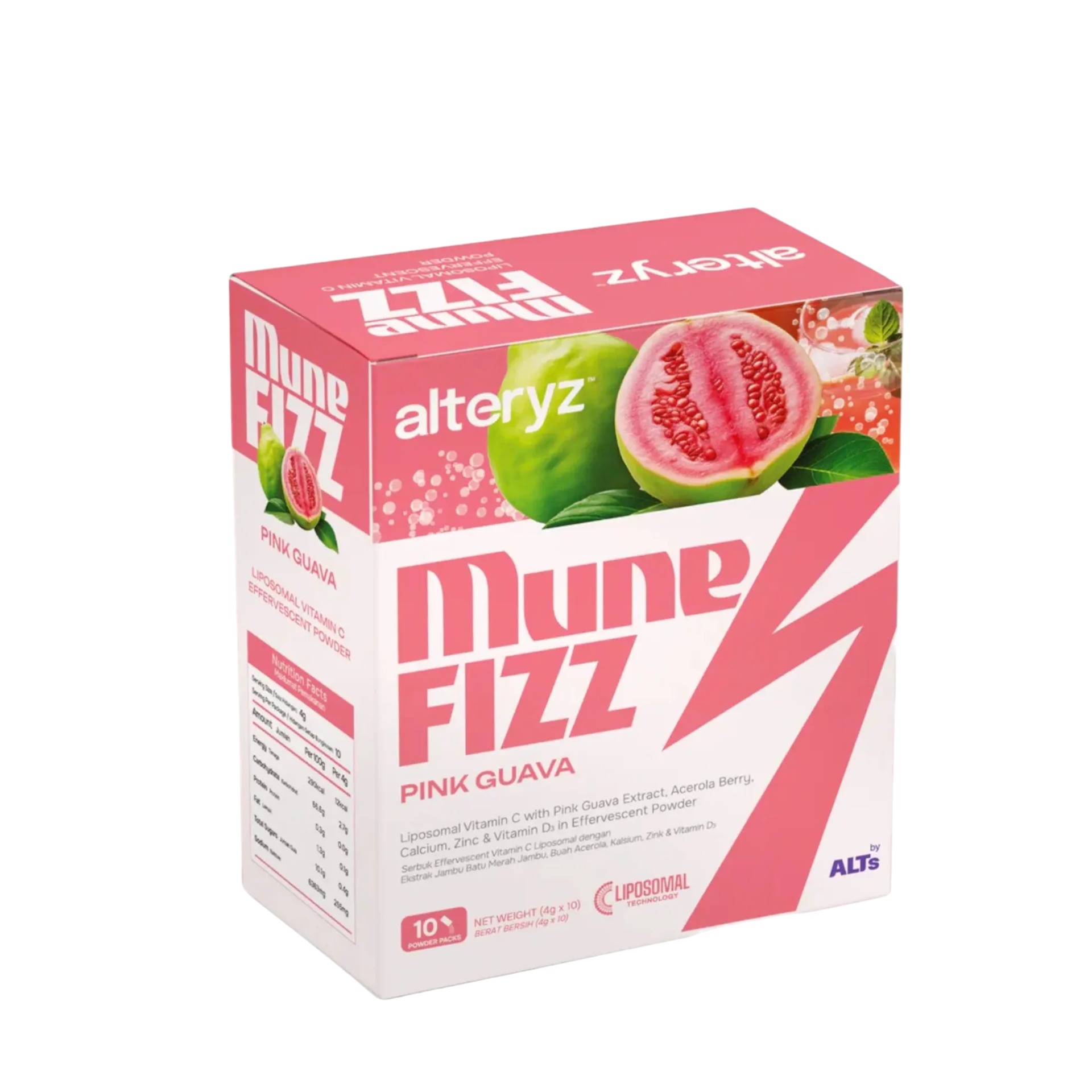 (Liposomal Vitamin C, Pink Guava & Acerola Berry) with Calcium, Vitamin D3 & Zinc. Increased absorption with Liposomal Technology. Contains 1,000 mg of Liposomal Vitamin C per packet. Naturally powerful immune booster, support healthy function of immune system. Effectively fight against flu, fever and boost energy.