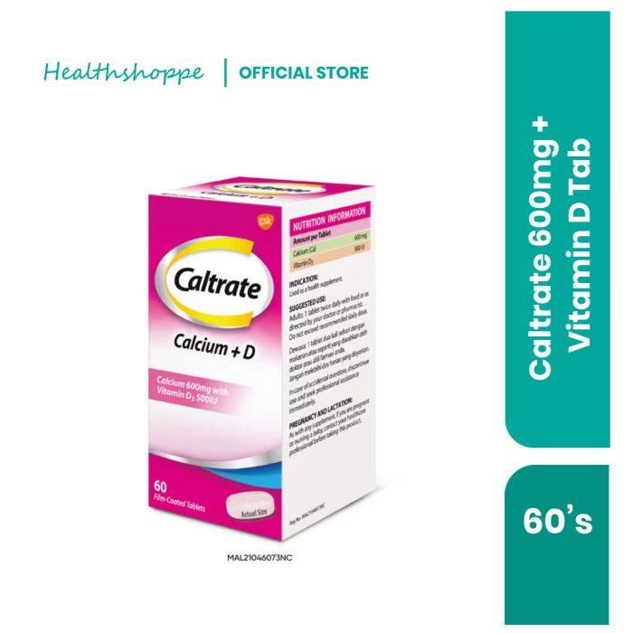 CALTRATE 600MG + VITAMIN D TAB 60’s